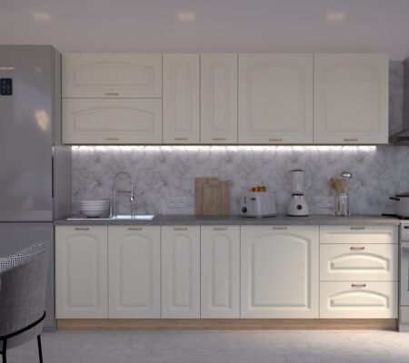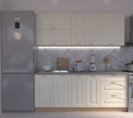 Prețul inițial a fost: 4.590,00 lei.3.900,00 leiPrețul curent este: 3.900,00 lei. TVA inclusBucătărie Maria Clasic NEW MDF Vanilie Fibră 2,6m C0
