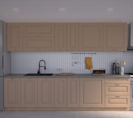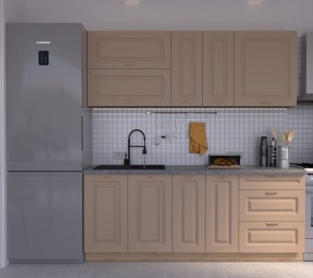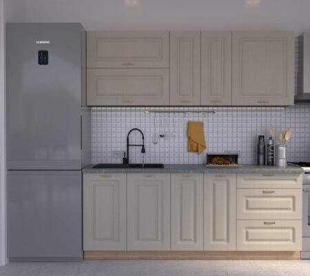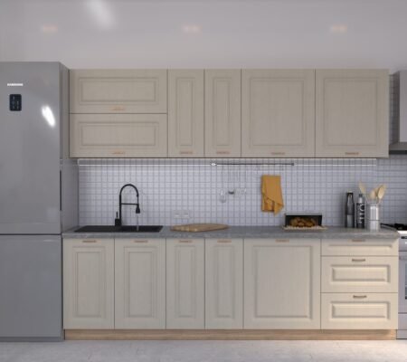 Prețul inițial a fost: 4.590,00 lei.3.900,00 leiPrețul curent este: 3.900,00 lei. TVA inclusBucătărie Maria Rame MDF Cashmir Fibră 2,6m C0