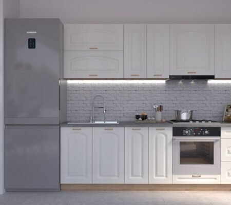 Prețul inițial a fost: 5.965,00 lei.5.070,00 leiPrețul curent este: 5.070,00 lei. TVA inclusBucătărie Maria Clasic NEW MDF Alb Fibră 3,0m C0