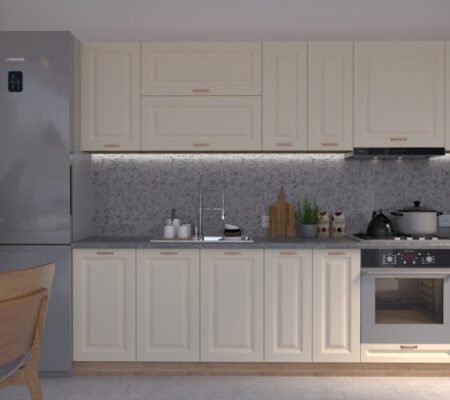 Prețul inițial a fost: 4.590,00 lei.3.900,00 leiPrețul curent este: 3.900,00 lei. TVA inclusBucătărie Maria Chenar MDF Vanilie Soft 2,6m C0