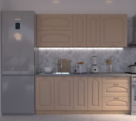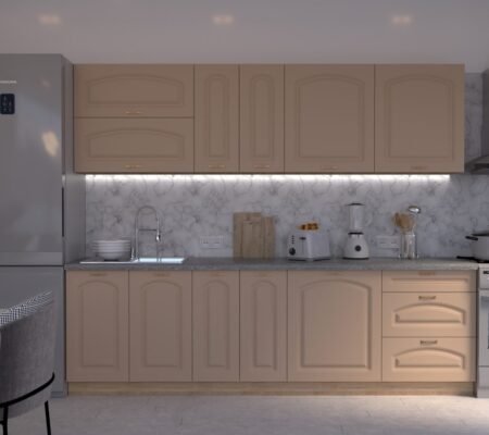 Prețul inițial a fost: 4.590,00 lei.3.900,00 leiPrețul curent este: 3.900,00 lei. TVA inclusBucătărie Maria Clasic NEW MDF Cappuccino Soft 2,6m C0