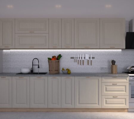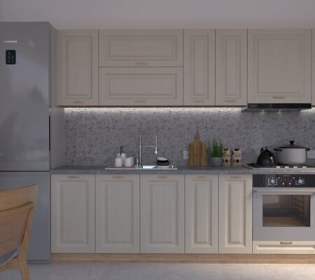 Prețul inițial a fost: 6.880,00 lei.5.850,00 leiPrețul curent este: 5.850,00 lei. TVA inclusBucătărie Maria Chenar MDF Cashmir Fibră 3,0m HC
