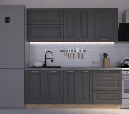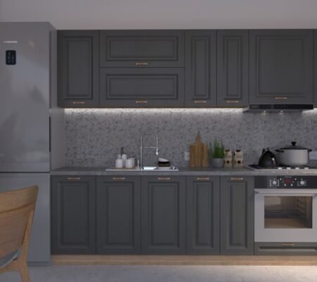 Prețul inițial a fost: 4.590,00 lei.3.900,00 leiPrețul curent este: 3.900,00 lei. TVA inclusBucătărie Maria Chenar MDF Grafit Fibră 2,6m C0