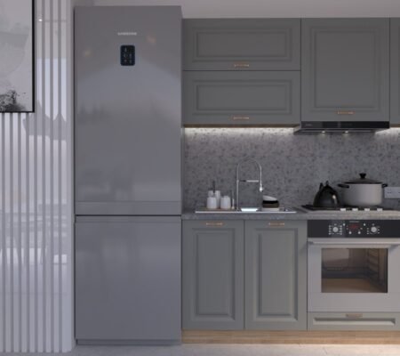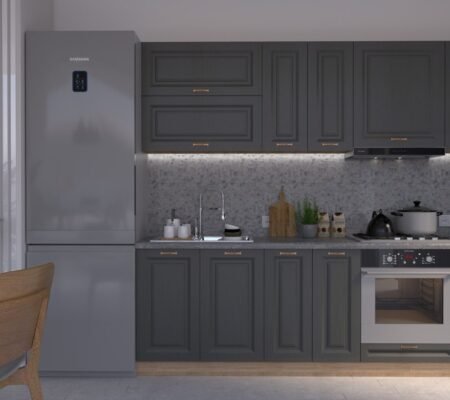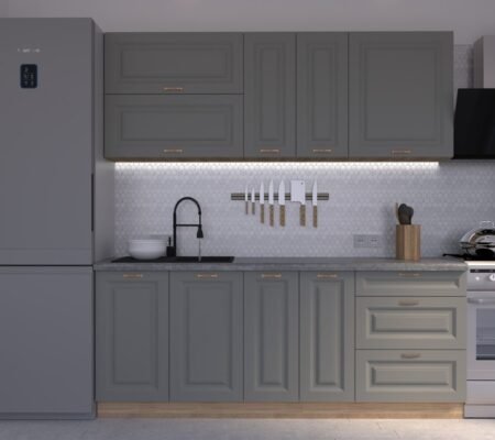 Prețul inițial a fost: 4.590,00 lei.3.900,00 leiPrețul curent este: 3.900,00 lei. TVA inclusBucătărie Maria Chenar MDF Gri Soft 2,0m HC