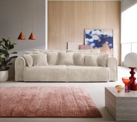 Prețul inițial a fost: 6.490,00 lei.5.350,00 leiPrețul curent este: 5.350,00 lei. TVA inclusCanapea extensibilă Bravia MAX-size, 302cm, extensie 2 zone, culoare bej, material fluffy velur raiat premium, extensie 244×182 cm