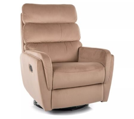Interval de prețuri: 4.160,00 lei până la 4.549,00 lei TVA inclusFotoliu recliner rabatabil si pivotant ARGOS Velvet, stofa catifelata bej – Bluvel 28, 78×82/162×107 cm