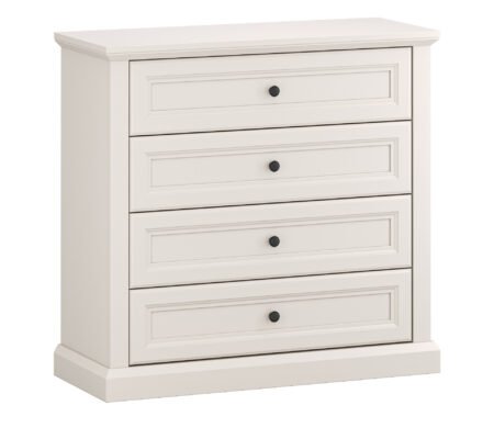 Prețul inițial a fost: 890,00 lei.660,00 leiPrețul curent este: 660,00 lei. TVA inclusComoda stil clasic provensal, 4 sertare, Alb, ELORA, 95 cm