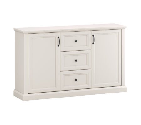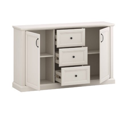 Prețul inițial a fost: 2.000,00 lei.1.175,00 leiPrețul curent este: 1.175,00 lei. TVA inclusComoda stil clasic provensal, usi si sertare, Alb, ELORA, 155 cm