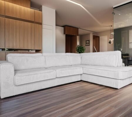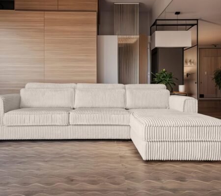 Prețul inițial a fost: 15.000,00 lei.11.400,00 leiPrețul curent este: 11.400,00 lei. TVA inclusColțar extensibil CORD, spațiu de depozitare, 264×162 cm, culoare cappuccino, stofă velur raiat mat, dreapta