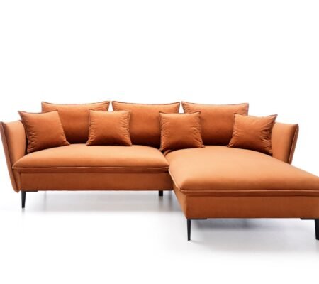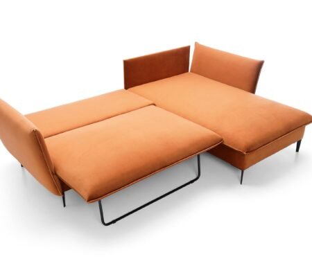 Prețul inițial a fost: 6.850,00 lei.5.800,00 leiPrețul curent este: 5.800,00 lei. TVA inclusColțar extensibil GLOSS, spațiu de depozitare, 258×167 cm, culoare portocaliu, stofă catifelată, dreapta
