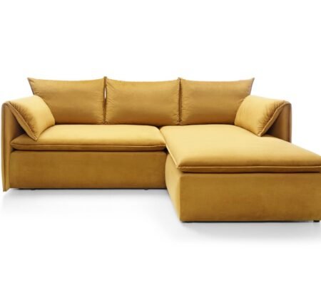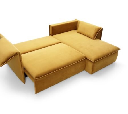 Prețul inițial a fost: 6.850,00 lei.5.800,00 leiPrețul curent este: 5.800,00 lei. TVA inclusColțar extensibil GOLD, spațiu de depozitare, 230×166 cm, culoare galben, stofă catifelată, dreapta