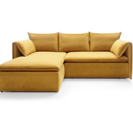 Prețul inițial a fost: 6.100,00 lei.5.350,00 leiPrețul curent este: 5.350,00 lei. TVA inclusColțar extensibil GOLD, spațiu de depozitare, 230×166 cm, culoare galben, stofă catifelată, stanga