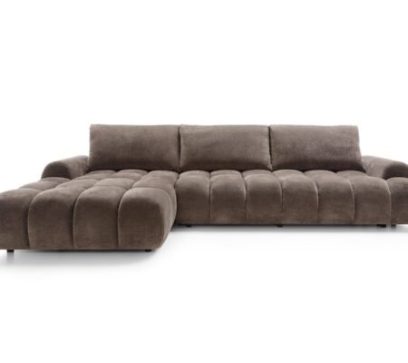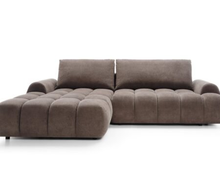 Prețul inițial a fost: 9.000,00 lei.7.550,00 leiPrețul curent este: 7.550,00 lei. TVA inclusColțar extensibil RIMINI M120, spațiu de depozitare, cusături verticale, 280×178 cm, culoare maro ciocolatiu, stofă chenille, stanga
