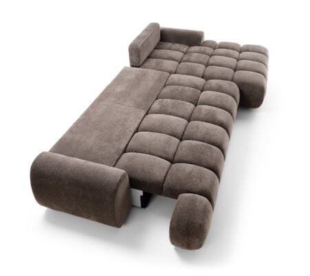 Prețul inițial a fost: 9.000,00 lei.7.550,00 leiPrețul curent este: 7.550,00 lei. TVA inclusColțar extensibil RIMINI M180, spațiu de depozitare, cusături verticale, 340×178 cm, culoare maro ciocolatiu, stofă chenille, dreapta