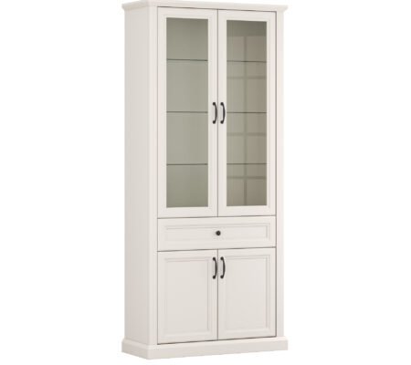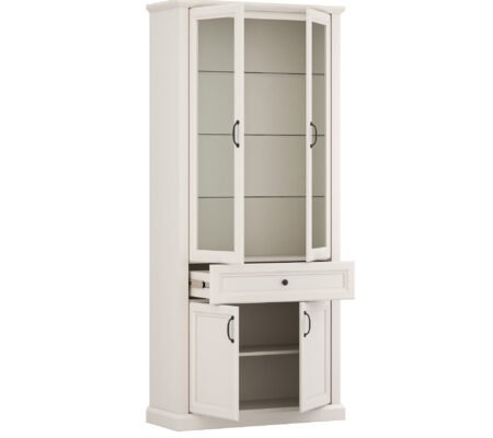 Prețul inițial a fost: 2.900,00 lei.1.650,00 leiPrețul curent este: 1.650,00 lei. TVA inclusVitrina inalta stil clasic provensal, 2 usi sticla si sertar, Alb, ELORA, 100 cm