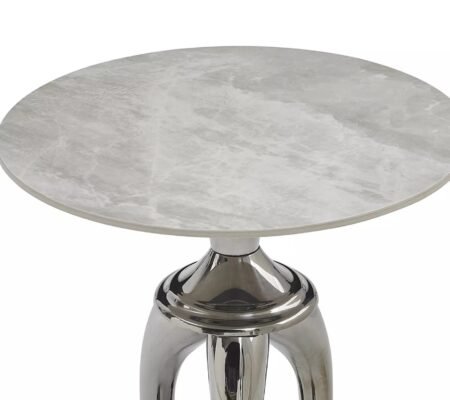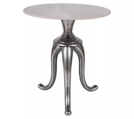 Prețul inițial a fost: 550,00 lei.395,00 leiPrețul curent este: 395,00 lei. TVA inclusMasuta cafea SNAKE, alb cu efect de marmura/argintiu, ceramica/metal, 48×55 cm