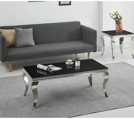 Prețul inițial a fost: 1.480,00 lei.914,00 leiPrețul curent este: 914,00 lei. TVA inclusMasuta cafea PRINCE A, negru/crom, sticla/metal, 120x60x45 cm