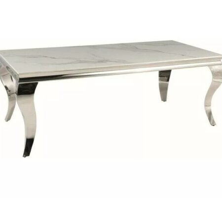 Prețul inițial a fost: 575,00 lei.405,00 leiPrețul curent este: 405,00 lei. TVA inclusMasuta cafea PRINCE A, alb cu efect de marmura/crom, ceramica/otel, 120x60x45 cm
