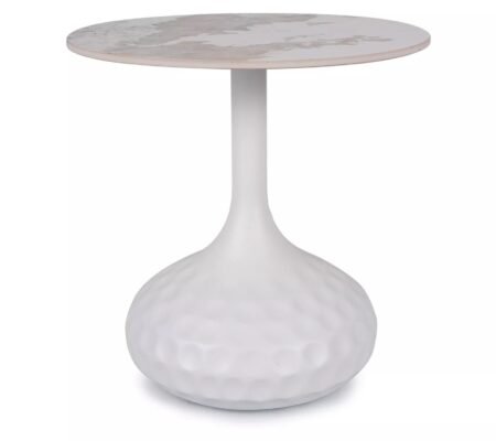 Prețul inițial a fost: 450,00 lei.334,00 leiPrețul curent este: 334,00 lei. TVA inclusMasuta cafea SALO B, alb cu efect de marmura, ceramica/metal, 50×49 cm