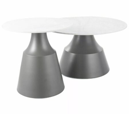 Prețul inițial a fost: 590,00 lei.427,00 leiPrețul curent este: 427,00 lei. TVA inclusSet 2 masute cafea ITAKA, alb/gri, ceramica/metal