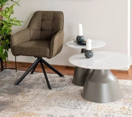 Prețul inițial a fost: 750,00 lei.604,00 leiPrețul curent este: 604,00 lei. TVA inclusSet 2 masute cafea RODOS, gri deschis, metal