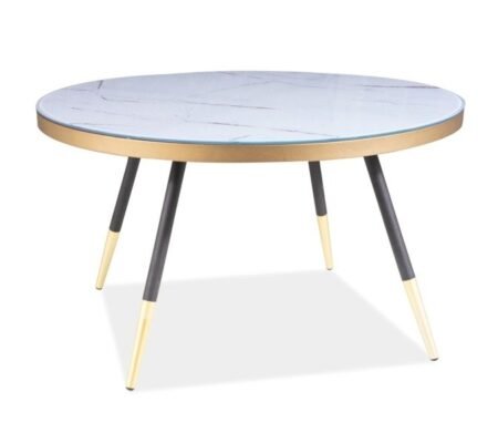 980,00 lei TVA inclusMasuta cafea VEGA B, alb cu efect de marmura/negru/auriu, sticla/metal, 80x80x45 cm