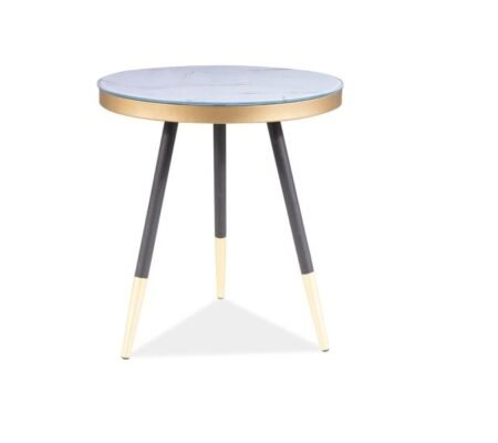 Prețul inițial a fost: 580,00 lei.456,00 leiPrețul curent este: 456,00 lei. TVA inclusMasuta cafea VEGA C, alb/negru/auriu, sticla/metal, 45x45x50 cm