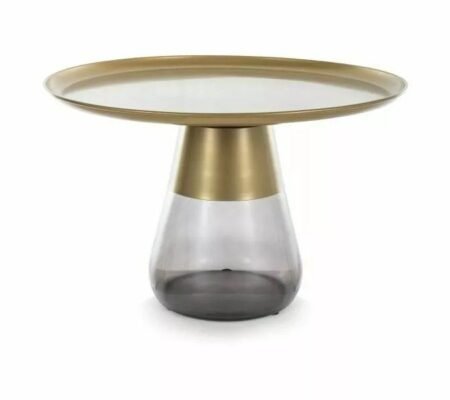 Prețul inițial a fost: 890,00 lei.725,00 leiPrețul curent este: 725,00 lei. TVA inclusMasuta cafea TIFFANY A GOLD, negru/auriu, metal/sticla, 50×52 cm