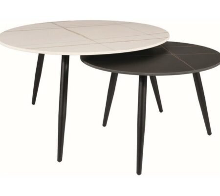 Prețul inițial a fost: 780,00 lei.585,00 leiPrețul curent este: 585,00 lei. TVA inclusSet 2 masute cafea KORA B, alb cu efect de marmura/negru cu efect de marmura, ceramica/metal
