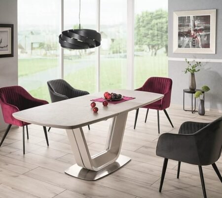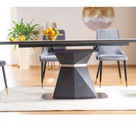 Prețul inițial a fost: 4.890,00 lei.3.611,00 leiPrețul curent este: 3.611,00 lei. TVA inclusMasa extensibila dining ARMANI, gri cu efect de marmura, 160/220x90x76 cm