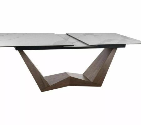 Prețul inițial a fost: 6.100,00 lei.5.487,00 leiPrețul curent este: 5.487,00 lei. TVA inclusMasa extensibila dining BONUCCI, negru cu efect de marmura/nuc, ceramica+stcila/furnir, 200/250x98x76 cm