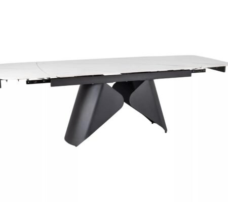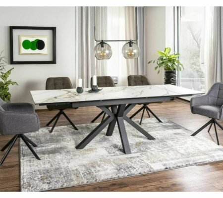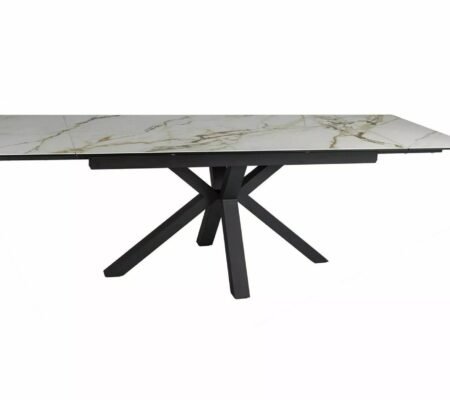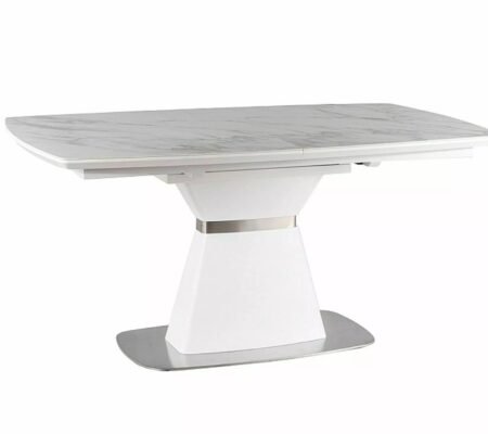 Prețul inițial a fost: 3.500,00 lei.3.217,00 leiPrețul curent este: 3.217,00 lei. TVA inclusMasa extensibila dining ARMANDO, alb cu efect de marmura, ceramica/metal, 160/240x90x76 cm