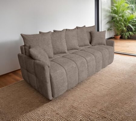 Prețul inițial a fost: 7.900,00 lei.5.500,00 leiPrețul curent este: 5.500,00 lei. TVA inclusCanapea extensibilă PAULO, culoare maro taupe, stofă chenille premium, 206x102cm (B3FB)