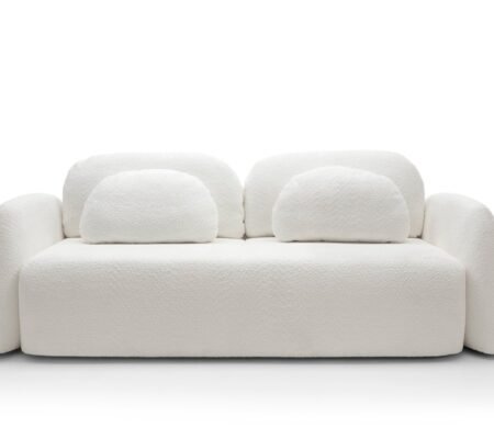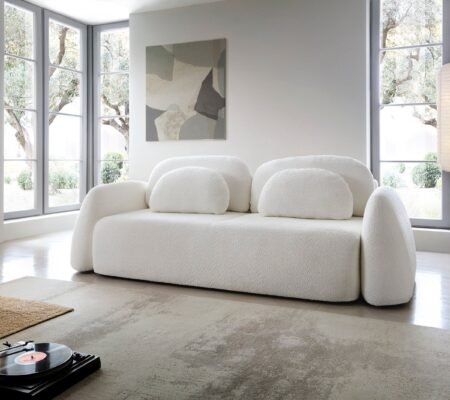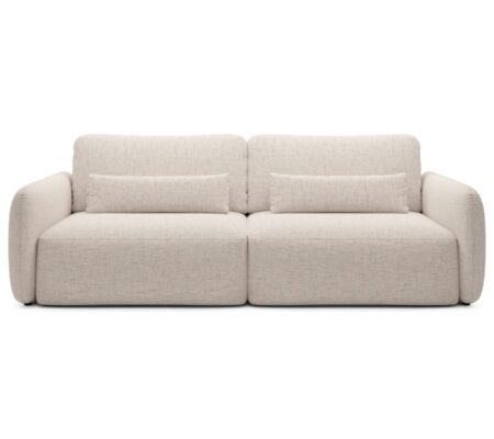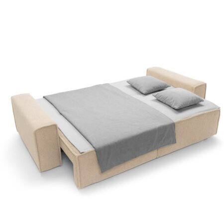 Prețul inițial a fost: 5.600,00 lei.4.500,00 leiPrețul curent este: 4.500,00 lei. TVA inclusCanapea extensibilă LOOP, 257 cm, culoare bej, stofă boucle dens moale, extensia 200×136 cm
