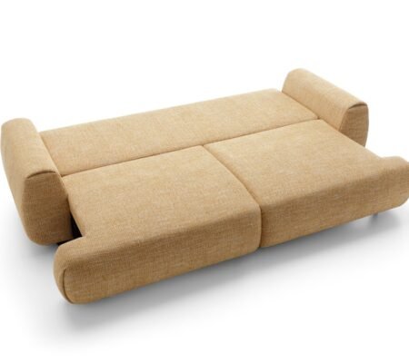 Canapea extensibilă POCKET, spațiu de depozitare, 260×106 cm, culoare galben, stofă premium, extensie 200x150cm