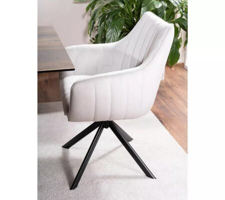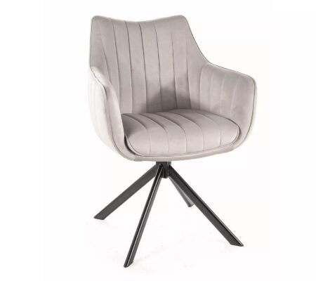 Prețul inițial a fost: 730,00 lei.522,00 leiPrețul curent este: 522,00 lei. TVA inclusScaun dining rotativ AZALIA Velvet, gri deschis/negru, stofa catifelata/metal, 61x58x86 cm