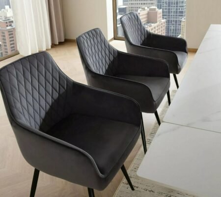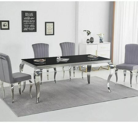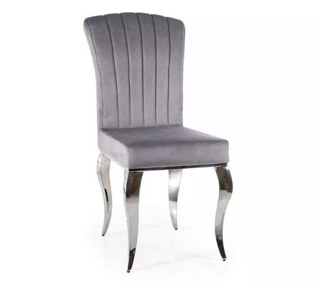 Prețul inițial a fost: 530,00 lei.403,00 leiPrețul curent este: 403,00 lei. TVA inclusScaun dining PRINCE Velvet, gri/crom, stofa catifelata tap. 195/metal, 46x44x100 cm