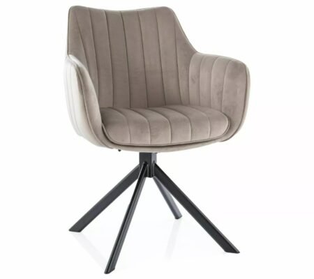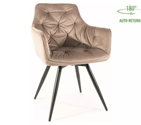 Prețul inițial a fost: 479,00 lei.306,00 leiPrețul curent este: 306,00 lei. TVA inclusScaun dining rotativ AZALIA Velvet, bej inchis/negru, stofa catifelata/metal, 61x58x86 cm