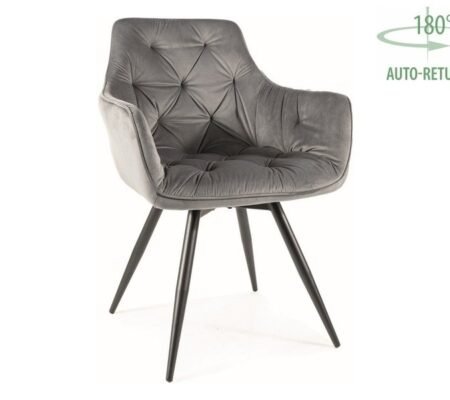 Prețul inițial a fost: 730,00 lei.522,00 leiPrețul curent este: 522,00 lei. TVA inclusScaun dining rotativ MANGO Velvet, gri/negru, stofa catifelata/metal, 57x45x83 cm