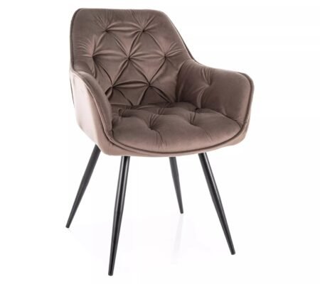 Prețul inițial a fost: 530,00 lei.403,00 leiPrețul curent este: 403,00 lei. TVA inclusScaun CHERRY VELVET, cappuccino/negru, stofa catifelata/metal, 57x58x87 cm