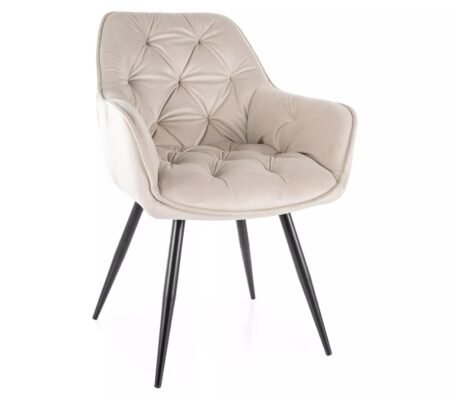 Prețul inițial a fost: 445,00 lei.350,00 leiPrețul curent este: 350,00 lei. TVA inclusScaun CHERRY VELVET, bej deschis/negru, stofa catifelata/metal, 57x58x87 cm