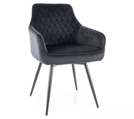 Prețul inițial a fost: 479,00 lei.306,00 leiPrețul curent este: 306,00 lei. TVA inclusScaun dining rotativ MARLO VELVET, arcuri POCKET in sezut, negru – Bluvel 19, stofa catifelata/metal, 55x45x88 cm