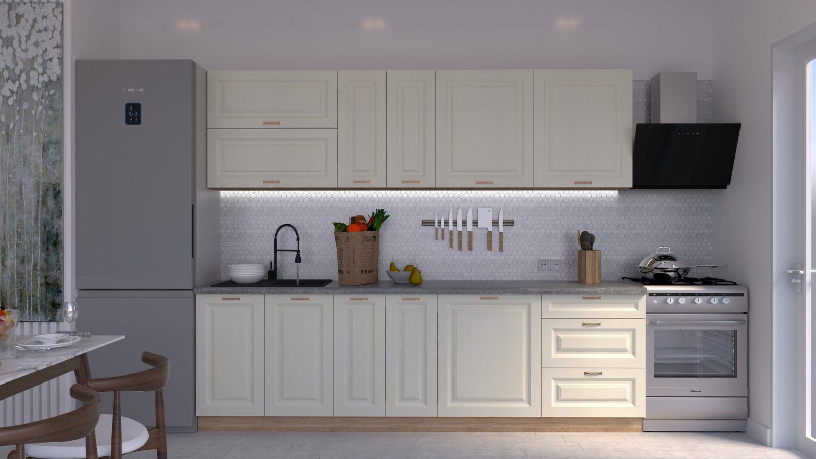 Set mobilă bucătărie MARIA Chenar MDF Vanilie FIBRĂ – C0