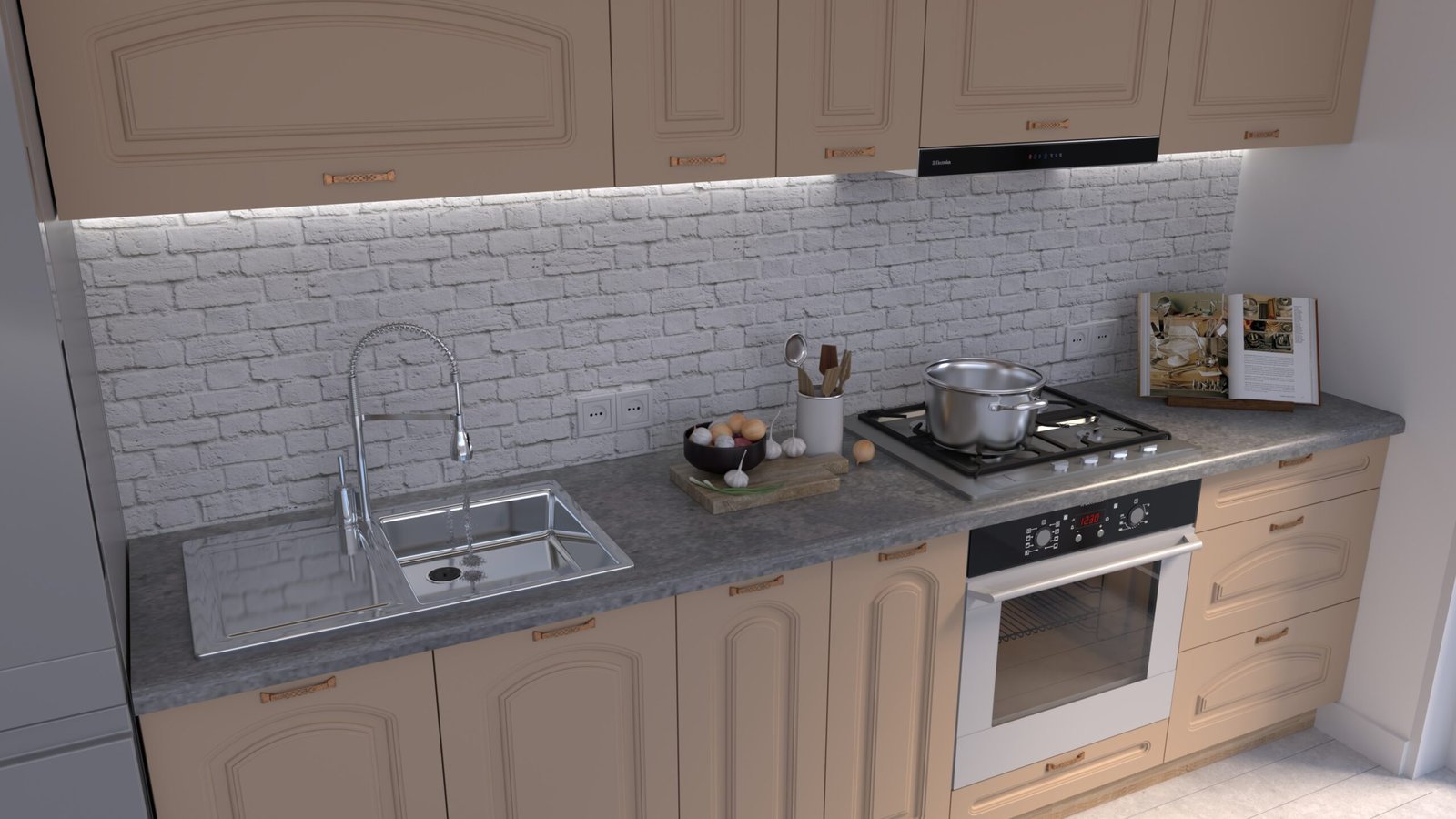 Chiuveta, bateria, electrocasnicele și obiectele decorative nu sunt incluse.