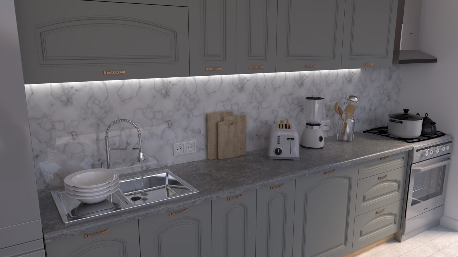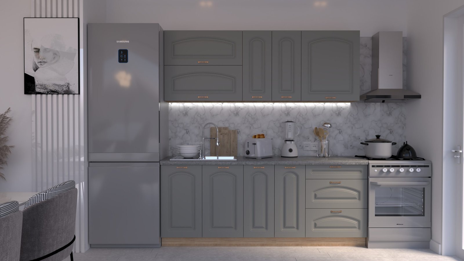 Set mobilă bucătărie MARIA Clasic NEW MDF Gri Soft – C0