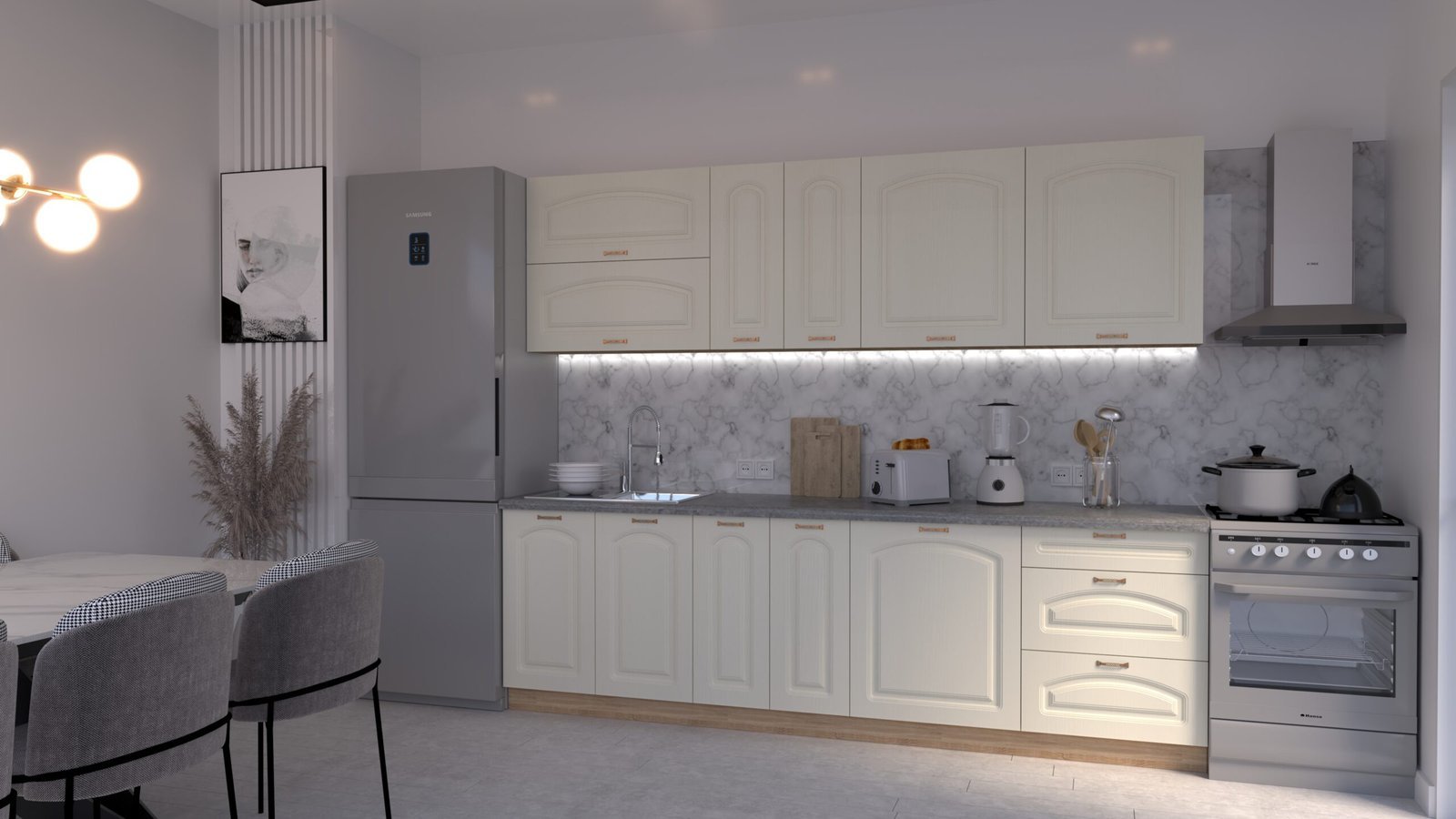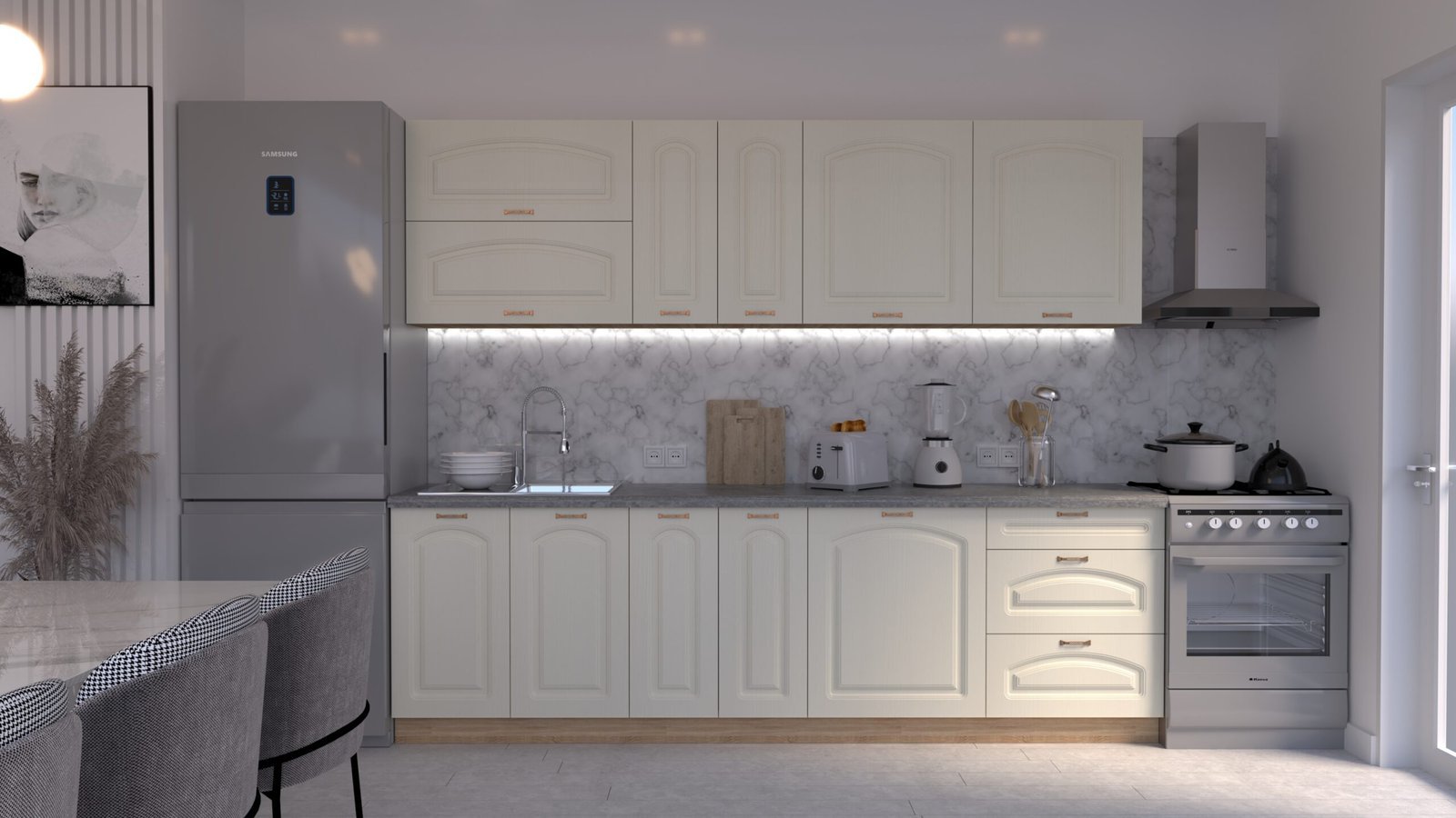 Descoperă cel mai iubit model de mobilă de bucătărie din România! Setul MARIA Clasic NEW combină designul clasic cu funcționalitatea maximă și calitatea superioară, redând eleganța clasică, cu frezare curbată în partea superioară a frontului mobilierului. Ideală pentru un decor rafinat și atemporal.