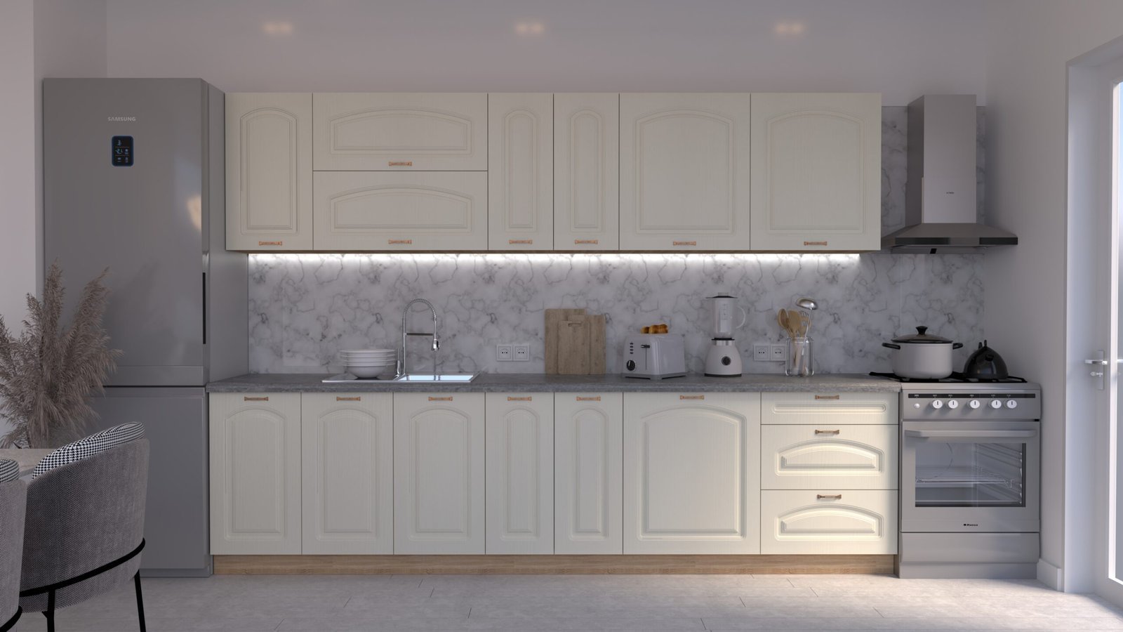 Descoperă cel mai iubit model de mobilă de bucătărie din România! Setul MARIA Clasic NEW combină designul clasic cu funcționalitatea maximă și calitatea superioară, redând eleganța clasică, cu frezare curbată în partea superioară a frontului mobilierului. Ideală pentru un decor rafinat și atemporal.