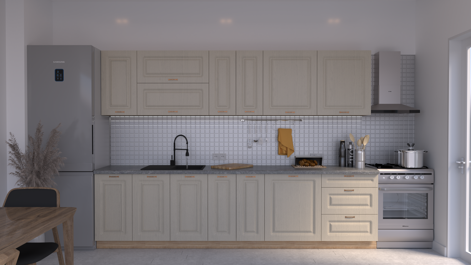 Descoperă cel mai iubit model de mobilă de bucătărie din România! Setul MARIA Rame combină designul clasic cu funcționalitatea maximă și calitatea superioară, prezentând un design sofisticat cu frezare rotunjită, fiind alegerea perfectă pentru un aspect elegant și primitor.