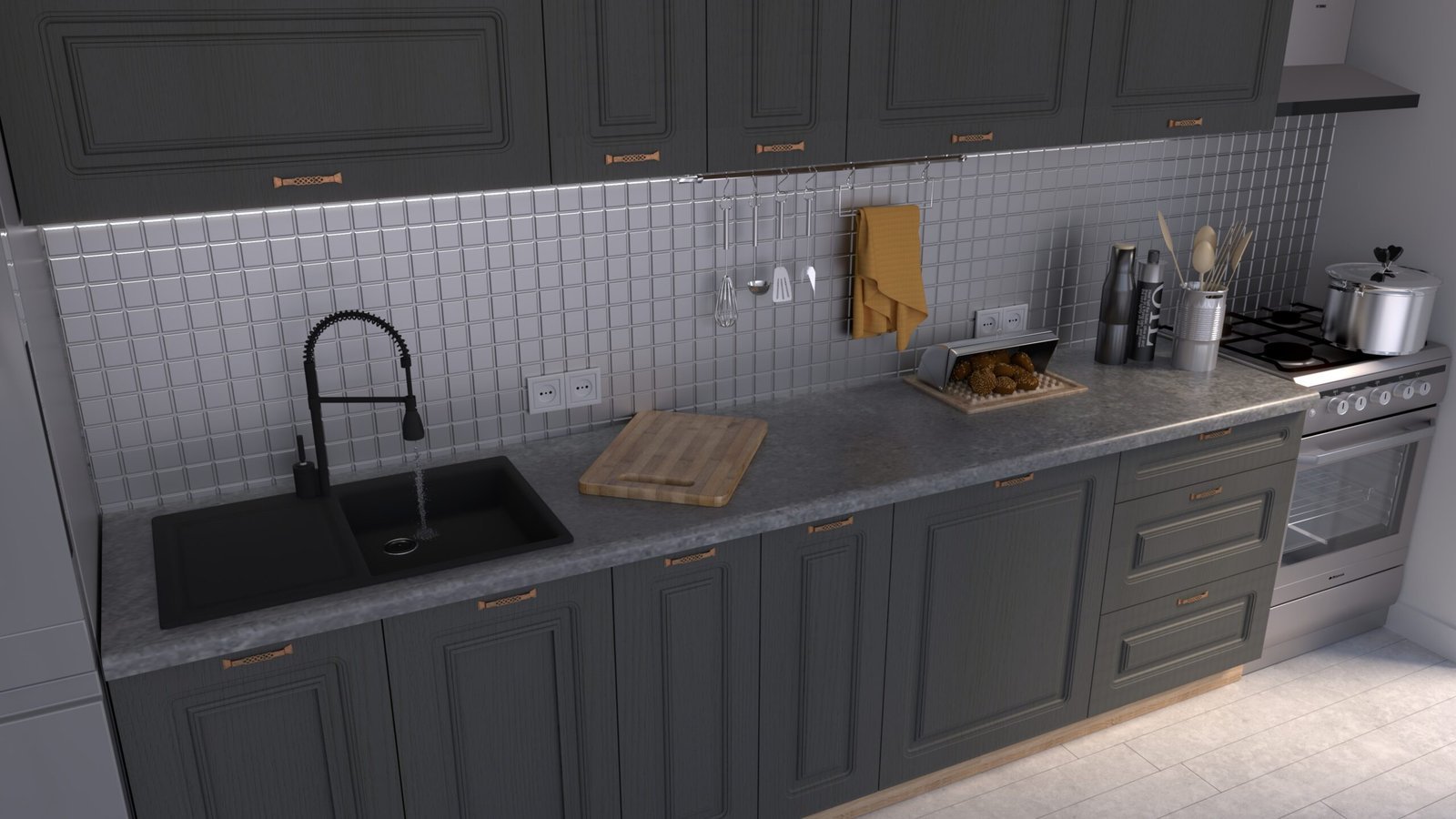Chiuveta, bateria, electrocasnicele și obiectele decorative nu sunt incluse.