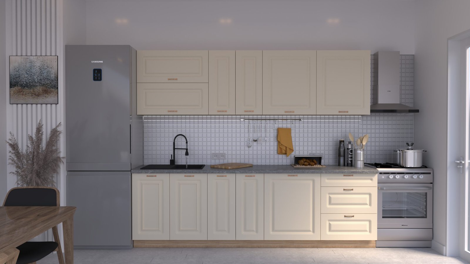 Set mobilă bucătărie MARIA Rame MDF Vanilie Soft – C0